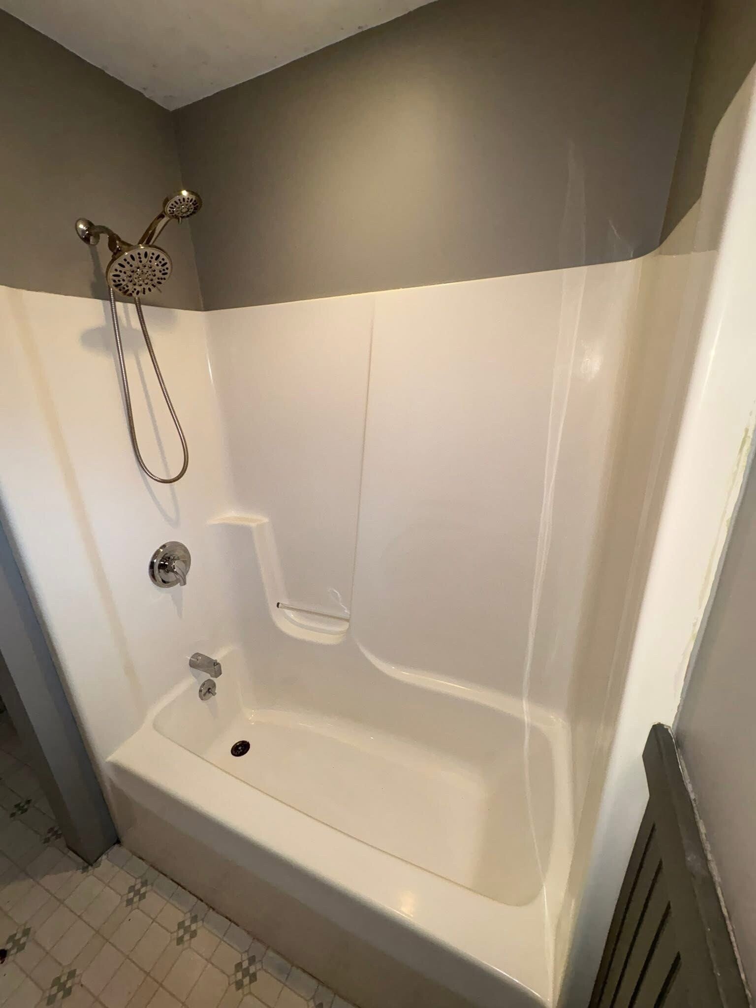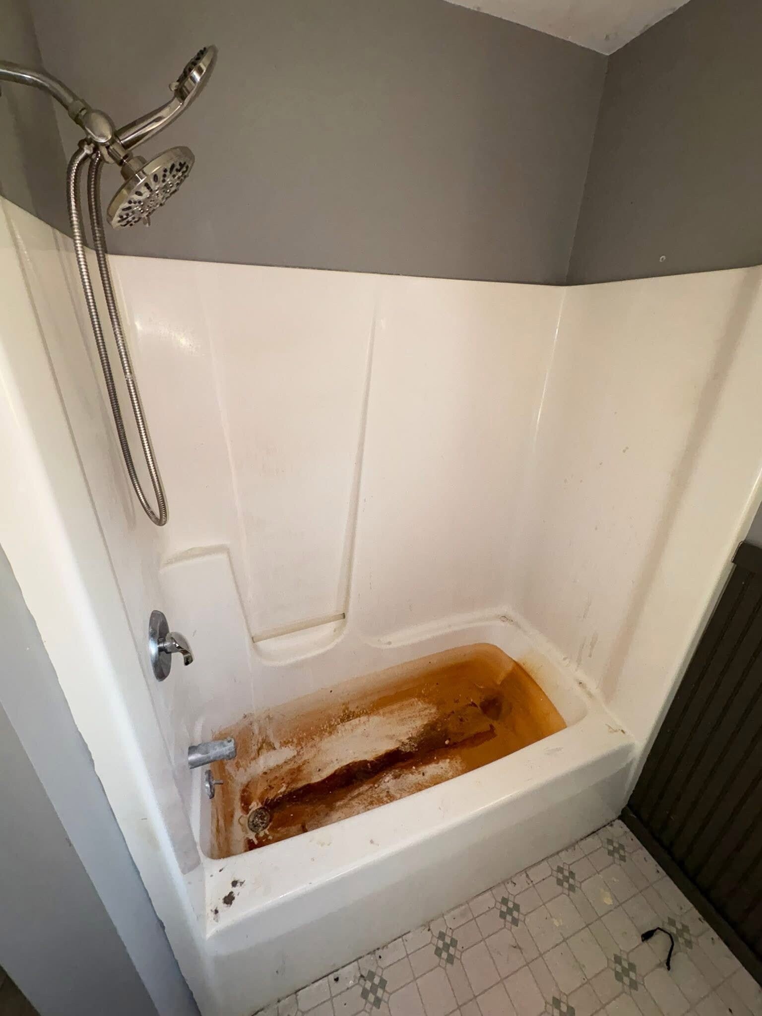 This is what we started with. Grime, mildew, and hard water stains had taken over. It felt unwelcoming and unclean.